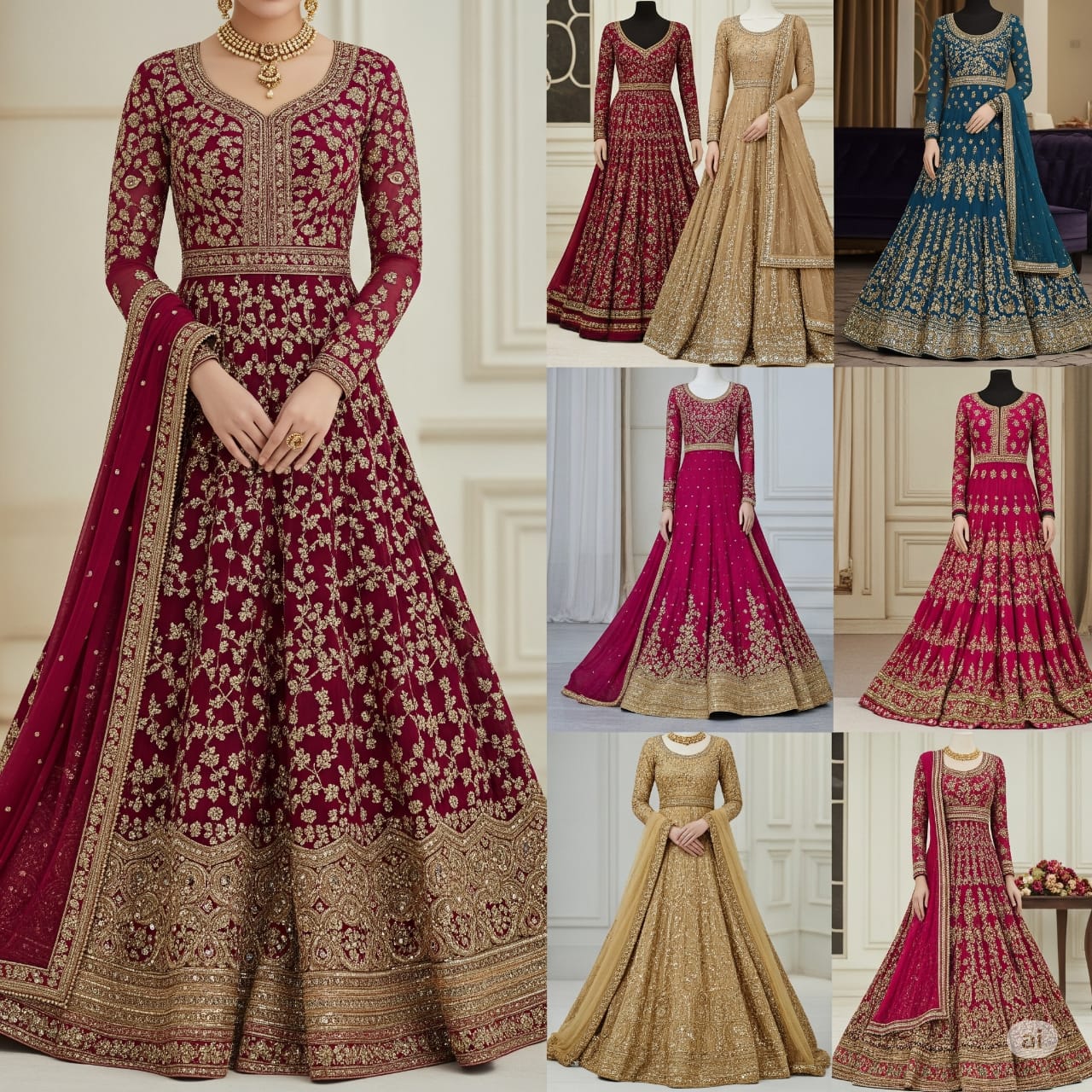 One of the most exciting aspects of the Bridal Anarkali Suit Collection is the wide variety of designs available to suit every bride’s taste, theme, and personality. From classic floor-length pieces with heavy zari work to trendy cape-style or layered Anarkalis, there is something for everyone. Brides can choose from traditional styles with full sleeves and rich brocade fabrics, or go for modern looks featuring backless cuts, sheer necklines, or attached dupattas. Jacket-style Anarkalis, ruffle hems, and gown-style Anarkalis with attached can-can skirts are also becoming increasingly popular for brides who want to stand out. For those planning multiple outfits for different ceremonies, Anarkalis offer flexible styling — lighter pastel designs for the haldi or mehendi, bold jewel tones for the wedding ceremony, and shimmering sequin-styled Anarkalis for the reception night. The options are endless, and the right design can transform a bride into a vision of regal beauty.